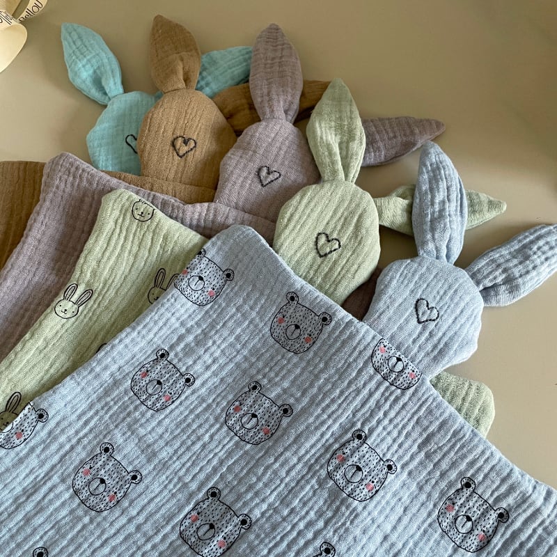 Muchláček je vyroben ze 100% bio bavlněného mušelínu, šetrnýmu k dětské pokožce.